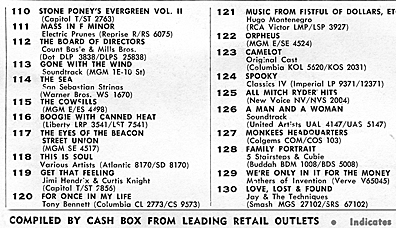 The BSU is at 117 and Orpheus at 122 on the Cashbox chart on 3/2/1968.